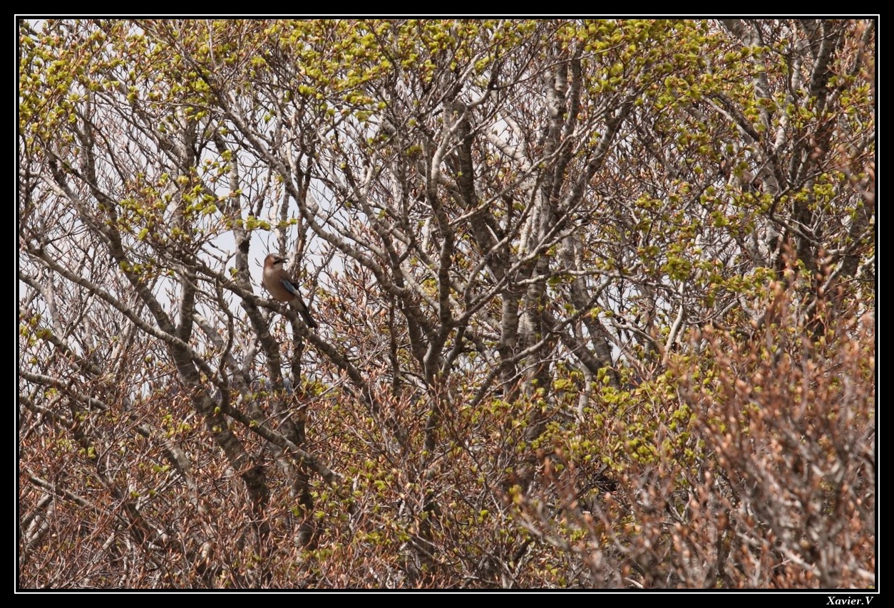 Lorsque je passe près d'une forêt de hêtres j'entends des bruits étranges. Des sortes de couinements et piaillements... Après une petite approche, je comprends finalement qu'il s'agit de quatre geais qui discutent fortement dans les arbres !