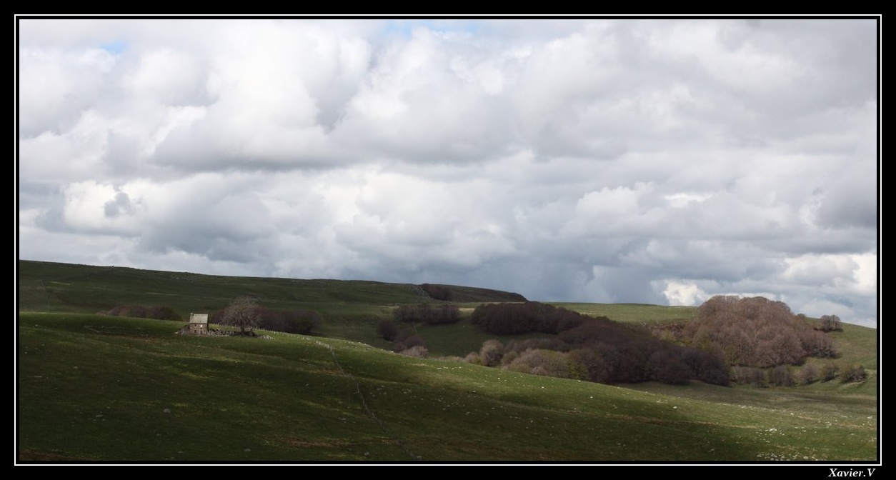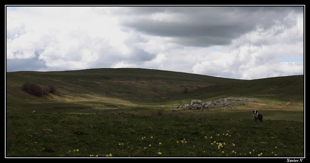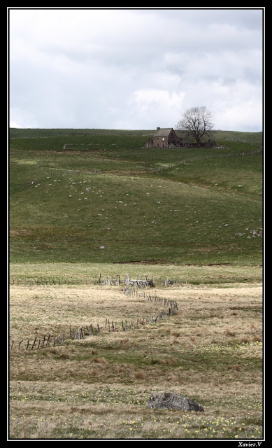 C'est d'ici que je démarre ma randonnée à travers les prés. Une seule chose à faire sur l'Aubrac : viser un buron et aller droit jusqu'à lui en sautant les clôtures ...