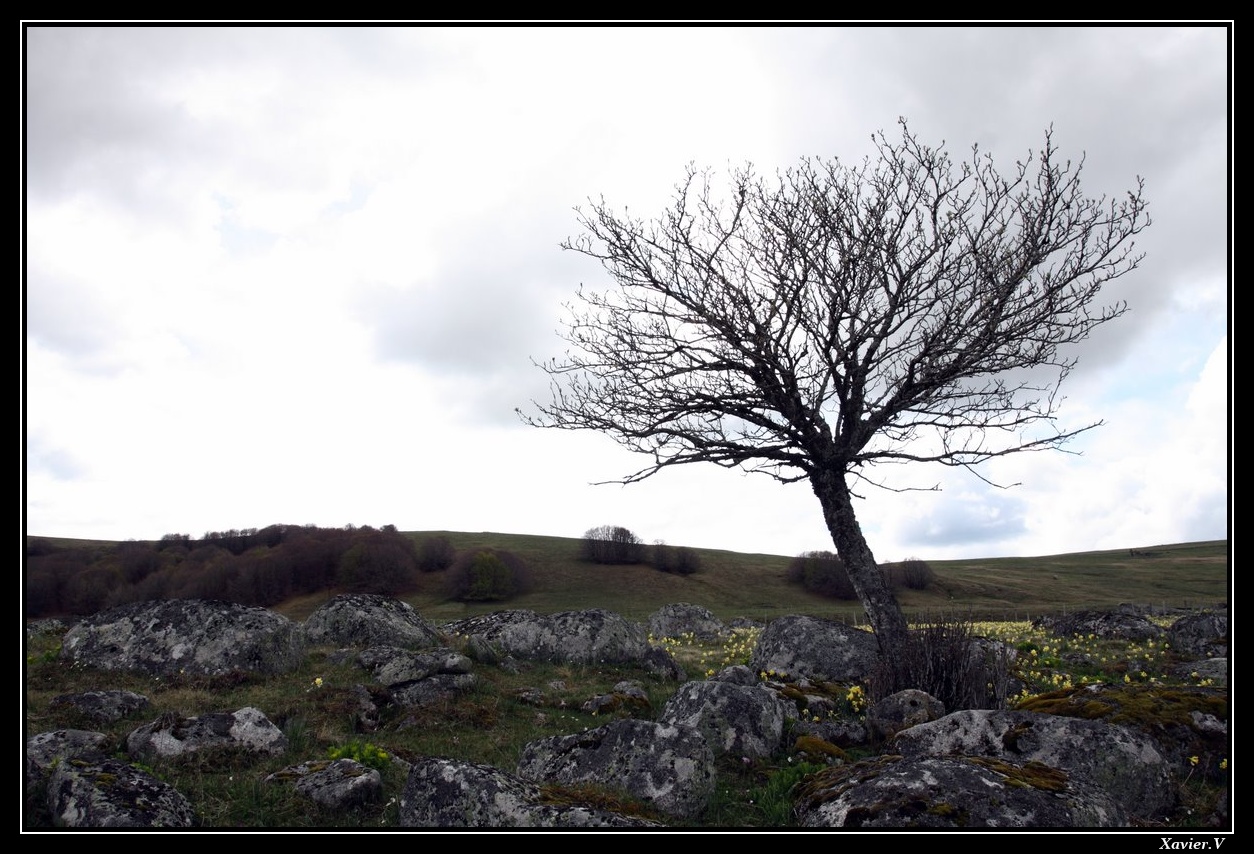Nous sommes montés manger un aligot au relais des lac la veille et nous sommes rentrés par Nasbinals. Depuis la route, j'ai aperçu un bel arbre et je reviens donc le voir aujourd'hui.