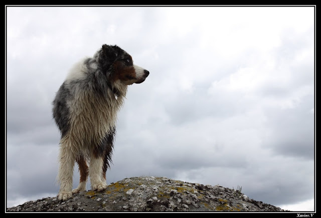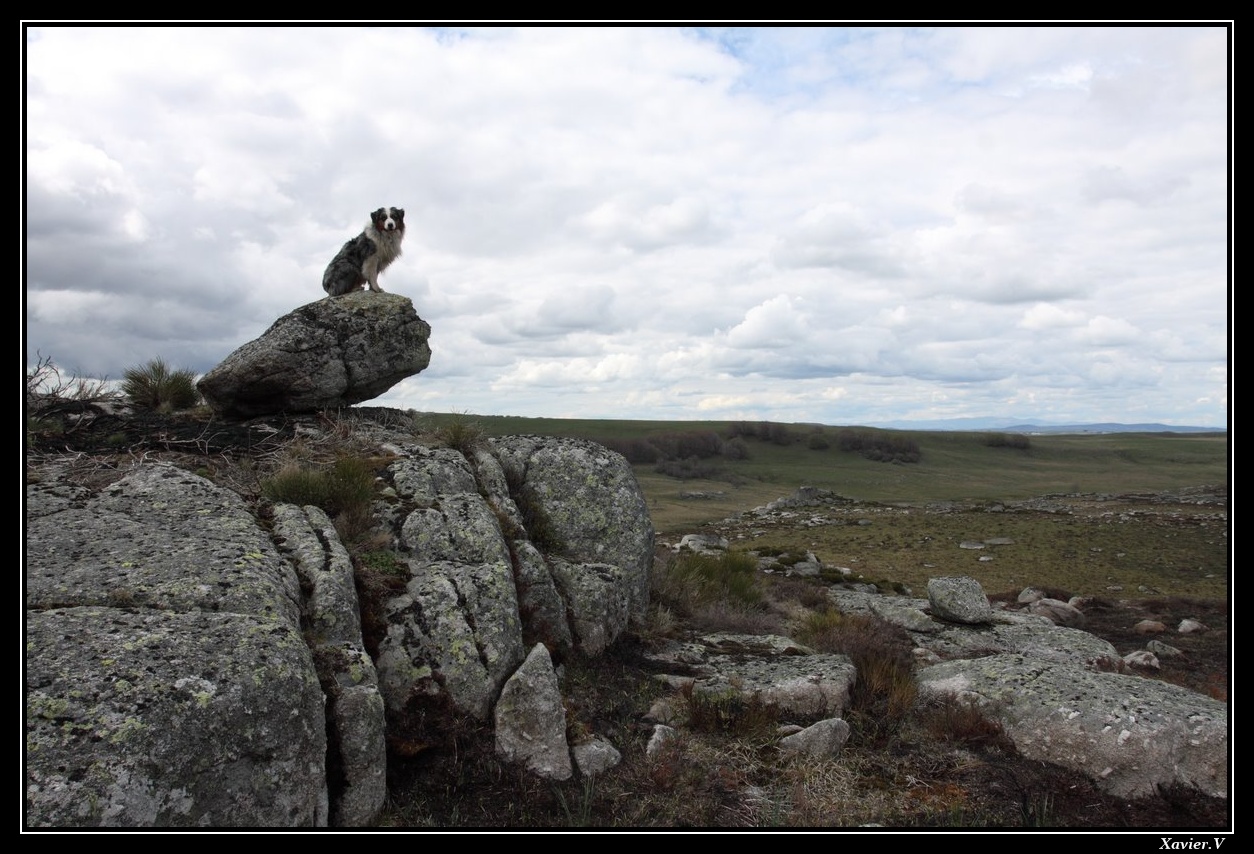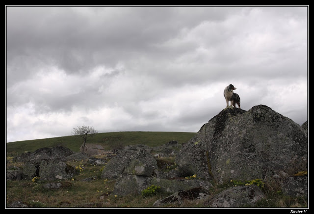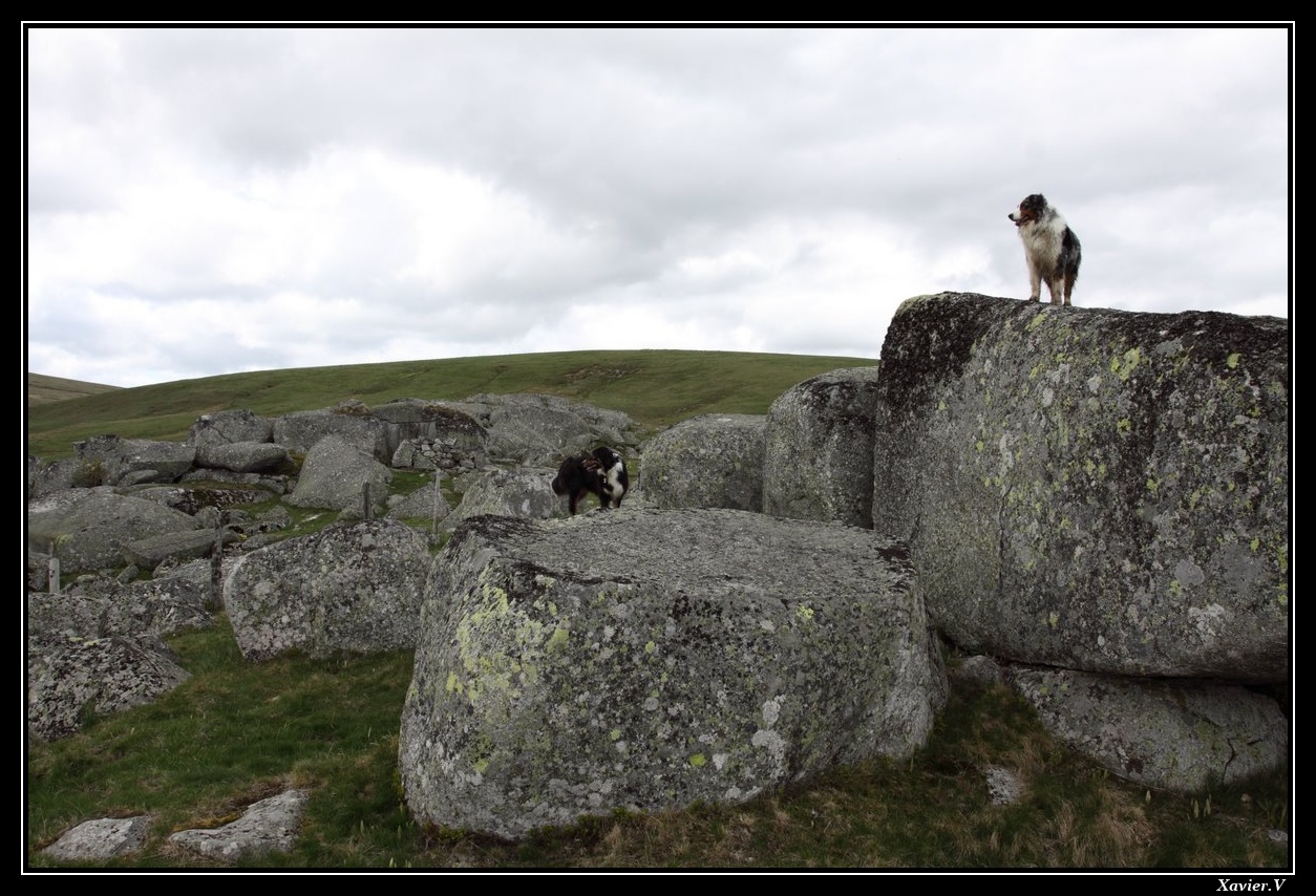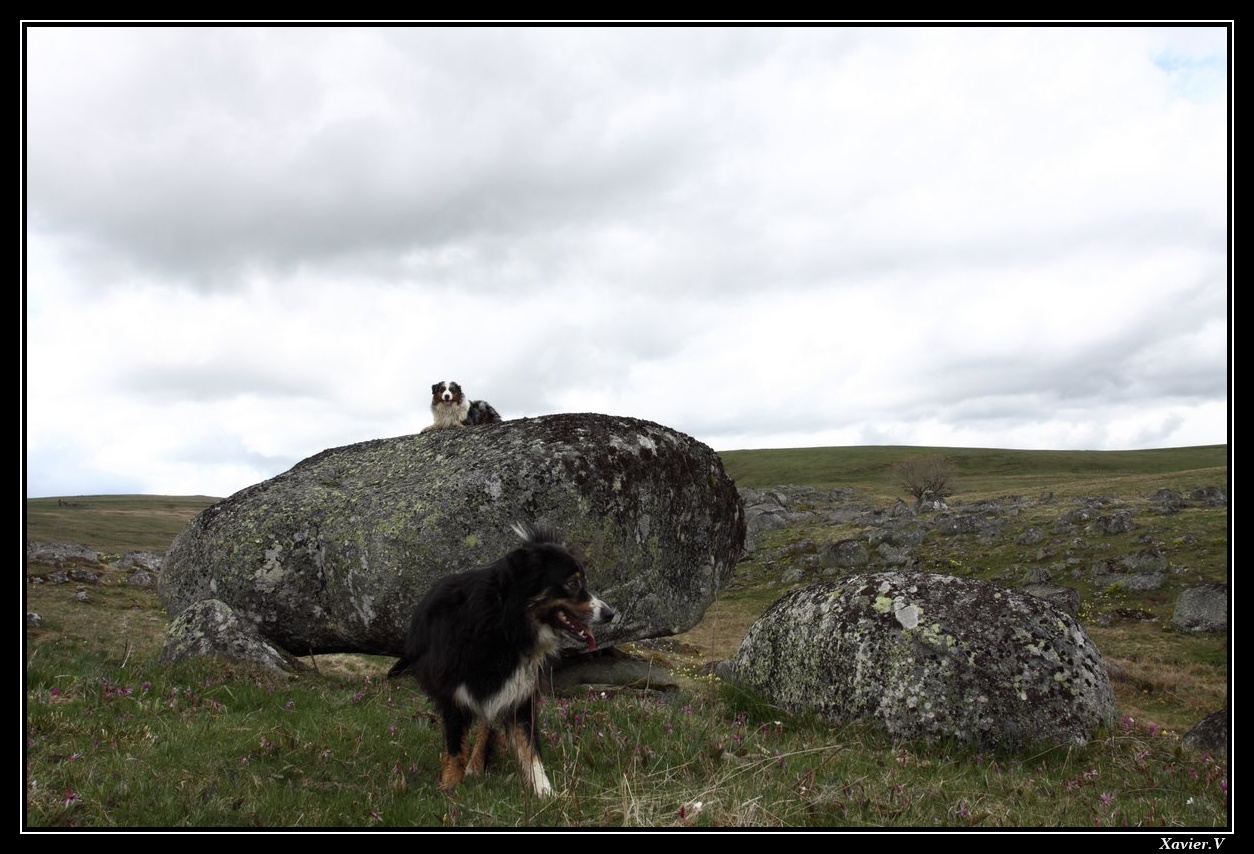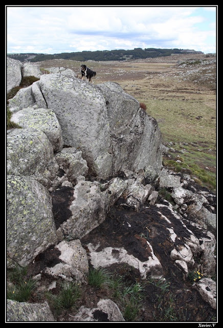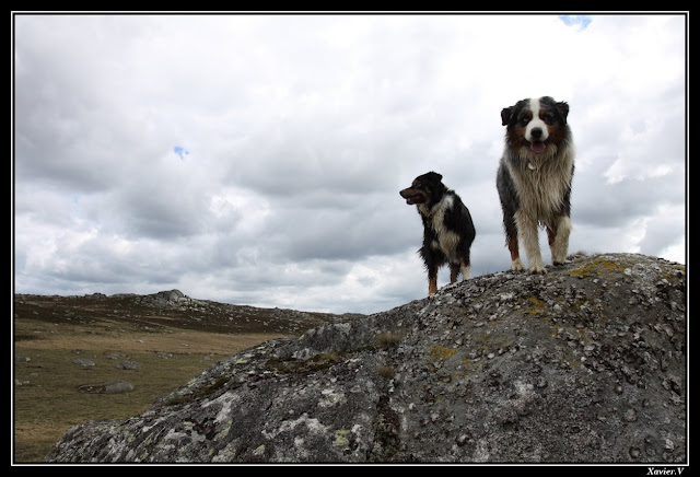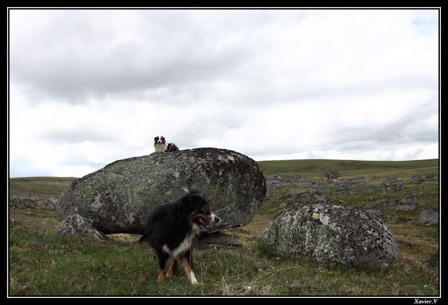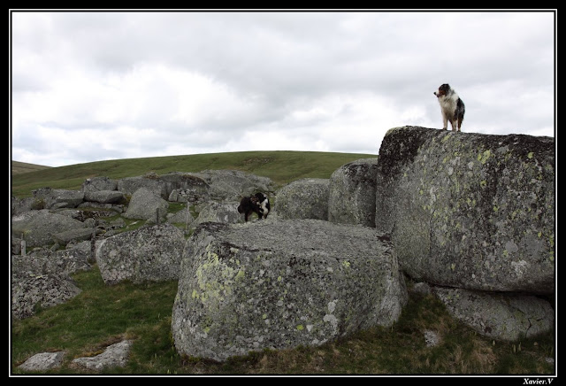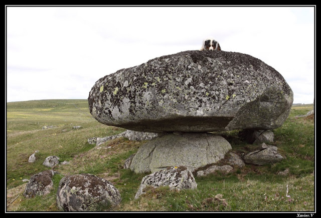 A proximité du Refuge des Rajas sur le GR 60 se trouve un chaos rocheux, fait de pleins de blocs de granit arrondis par le temps ... Dust est toujours aussi friand d'escalade, il donne ainsi l'échelle !