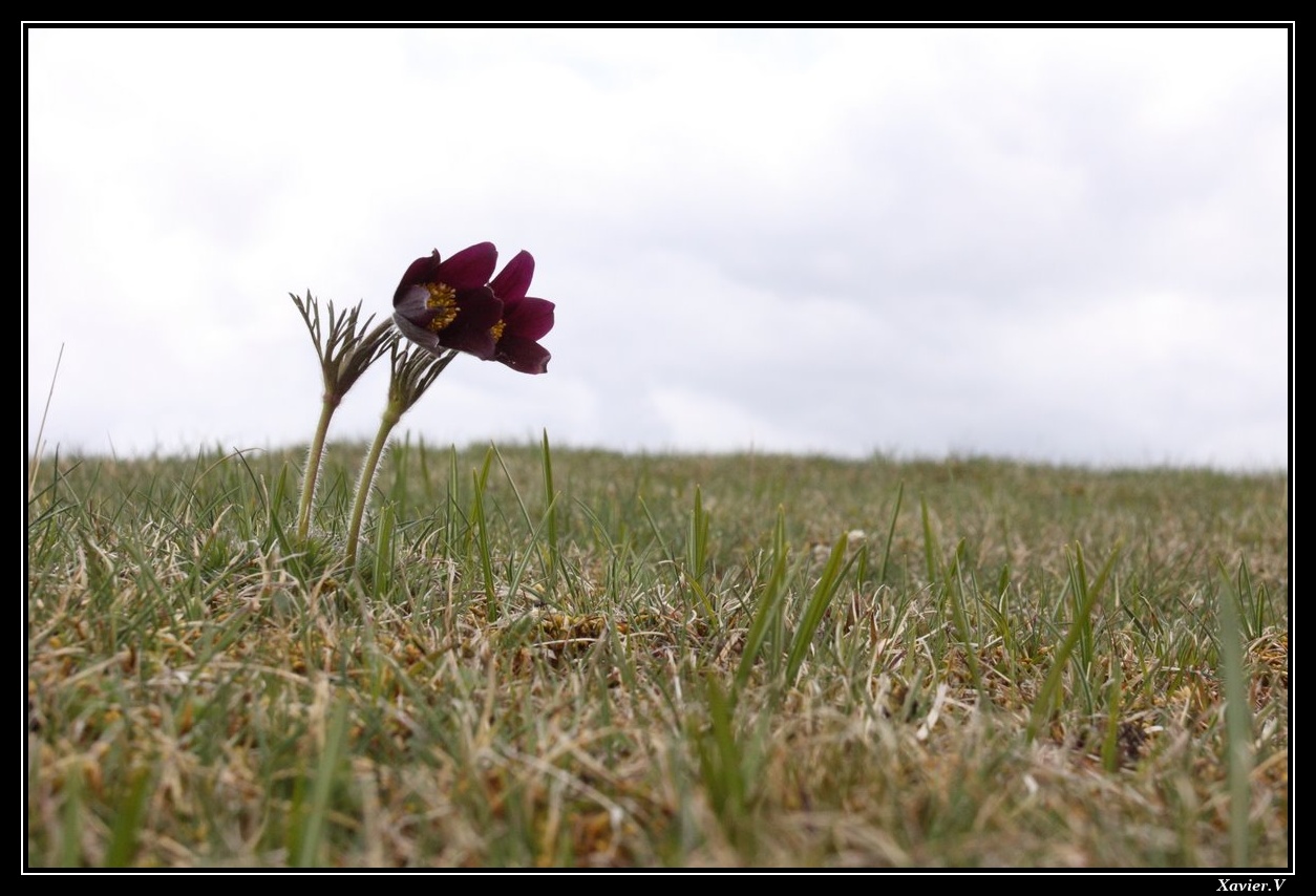Au pied de la croix, poussent quelques anémones pulsatiles.