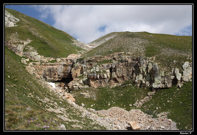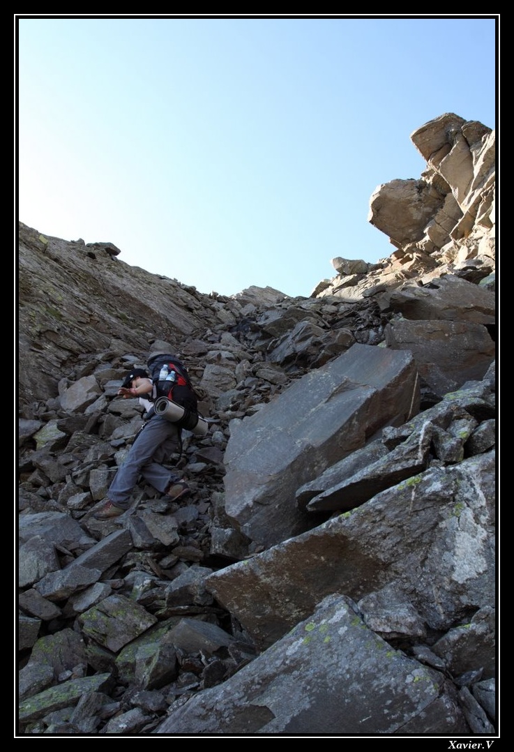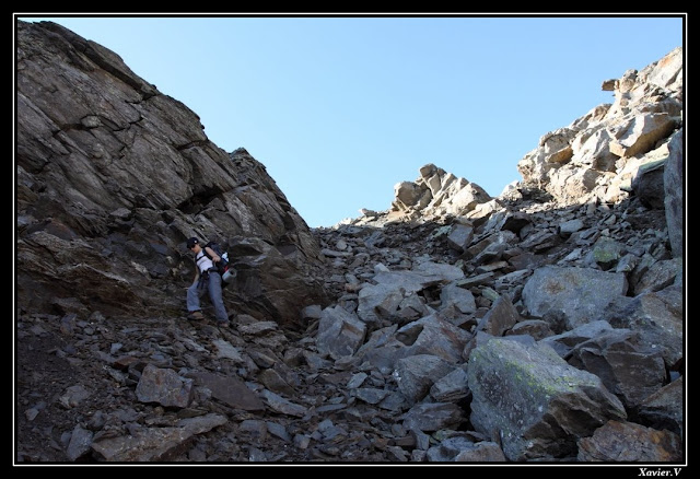 Encore et toujours des pierriers énormes à traverser. D'innombrables épeires y tissent de grandes toiles que nous nous efforçons d'éviter ...