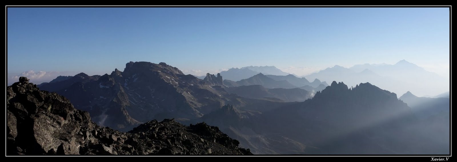 Un panoramique au sommet du pic du lac blanc à 7h20