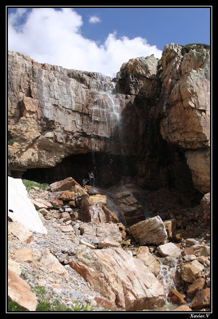 Les restes du glacier. Nous faisons de nouveau le plein d'eau dans un petit lac. Mais cette fois ci l'eau est moins claire ...